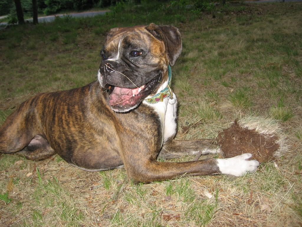 My Lily Bee and her favorite toy, a dried out grass stump: