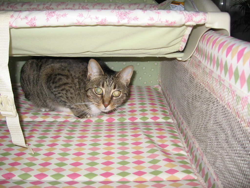 In other animal news...Noodle has found a great hiding place in the pack-n-play. I set it up the other day and she snuck right in. It may seem early to be setting up all of the baby stuff, but everything that we take out of the box is either broken or ripped so we are double checking everything! You never know...maybe the "tug" will make an early appearance. At least we will be ready if she does!