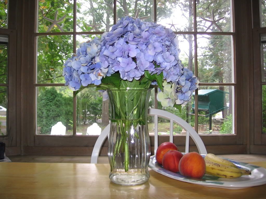 Oh, and one other thing, I have the best husband!! Look what he left on my nightstand for me. We only have the blue hydrangeas in our yard and they are starting to die so he went out and got me some purple ones. The "tug" is going to have the best daddy! I love you Mr